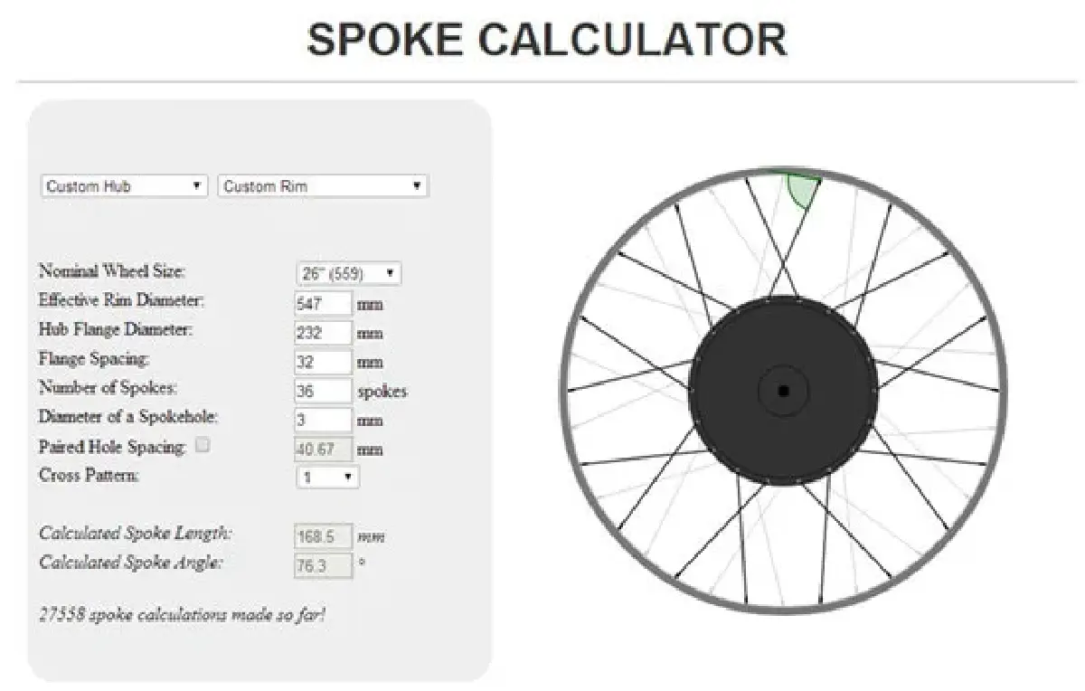 - Dynamic Calculation: Users inputs rim diameter, hub flange dimensions, and spoke count to get instant length requirements.